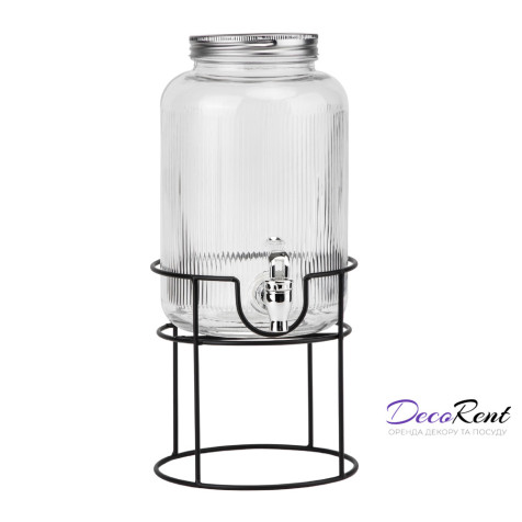 Скляна лимонадниця на металевій підставці — це стильний і практичний диспенсер для напоїв, який ідеально підходить для фуршетів на ваше свято